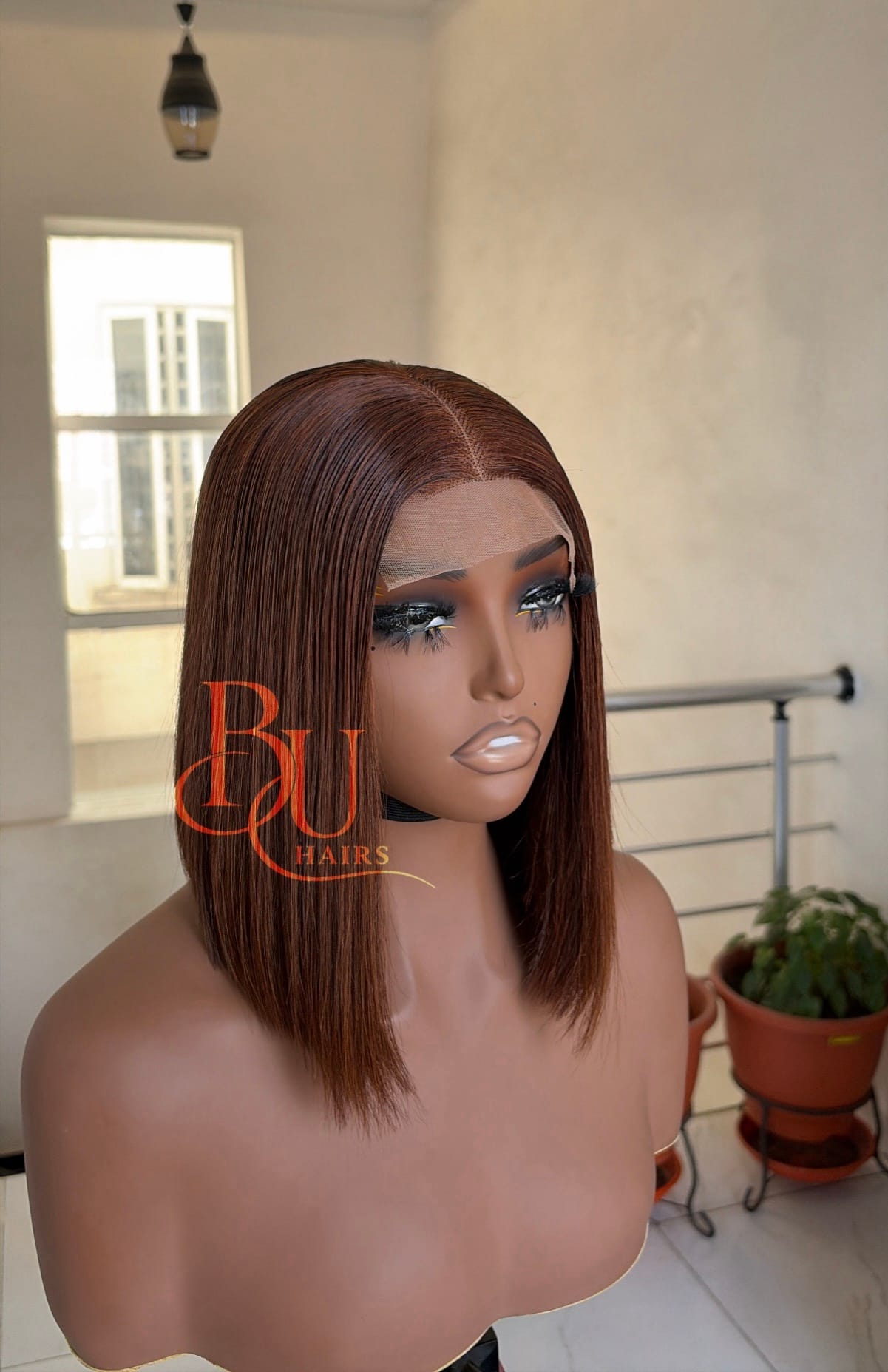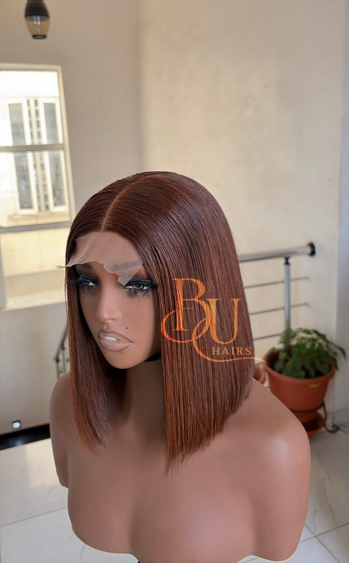 Our wigs are displayed on mannequins to showcase styling. Because mannequins have longer necks and smaller head proportions, lengths may appear longer on them than on a human head.