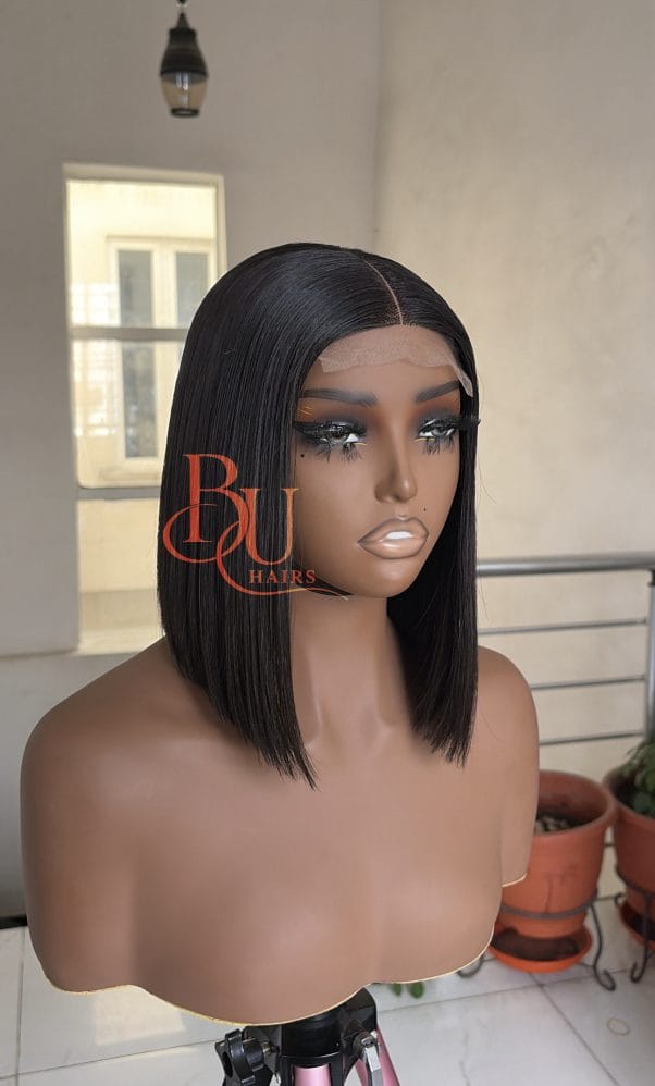 Our wigs are displayed on mannequins to showcase styling. Because mannequins have longer necks and smaller head proportions, lengths may appear longer on them than on a human head.
