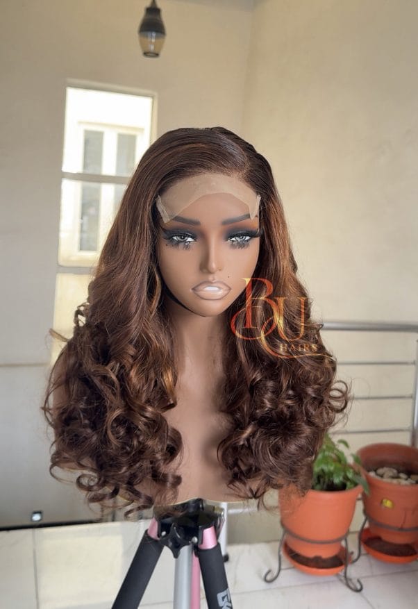 Our wigs are displayed on mannequins to showcase styling. Because mannequins have longer necks and smaller head proportions, lengths may appear longer on them than on a human head.