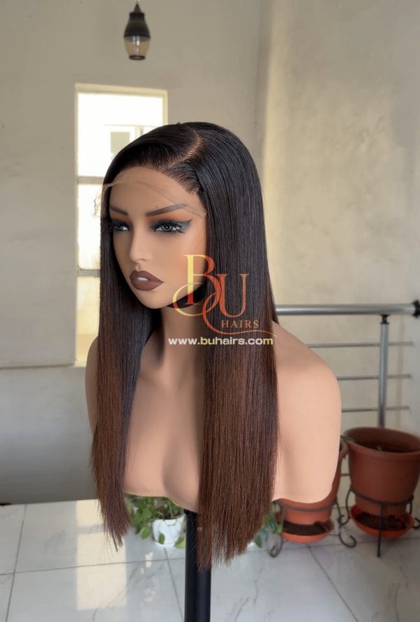 Our wigs are displayed on mannequins to showcase styling. Because mannequins have longer necks and smaller head proportions, lengths may appear longer on them than on a human head.