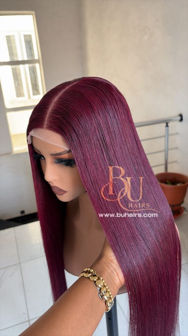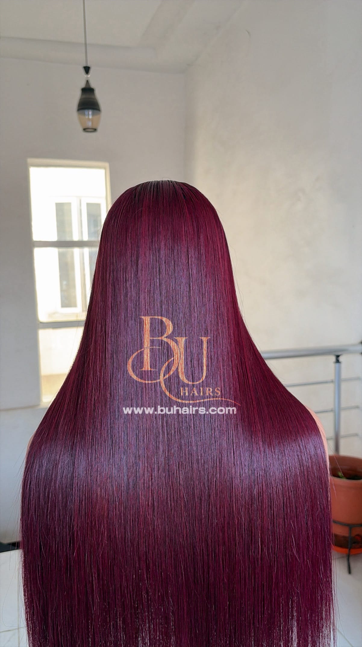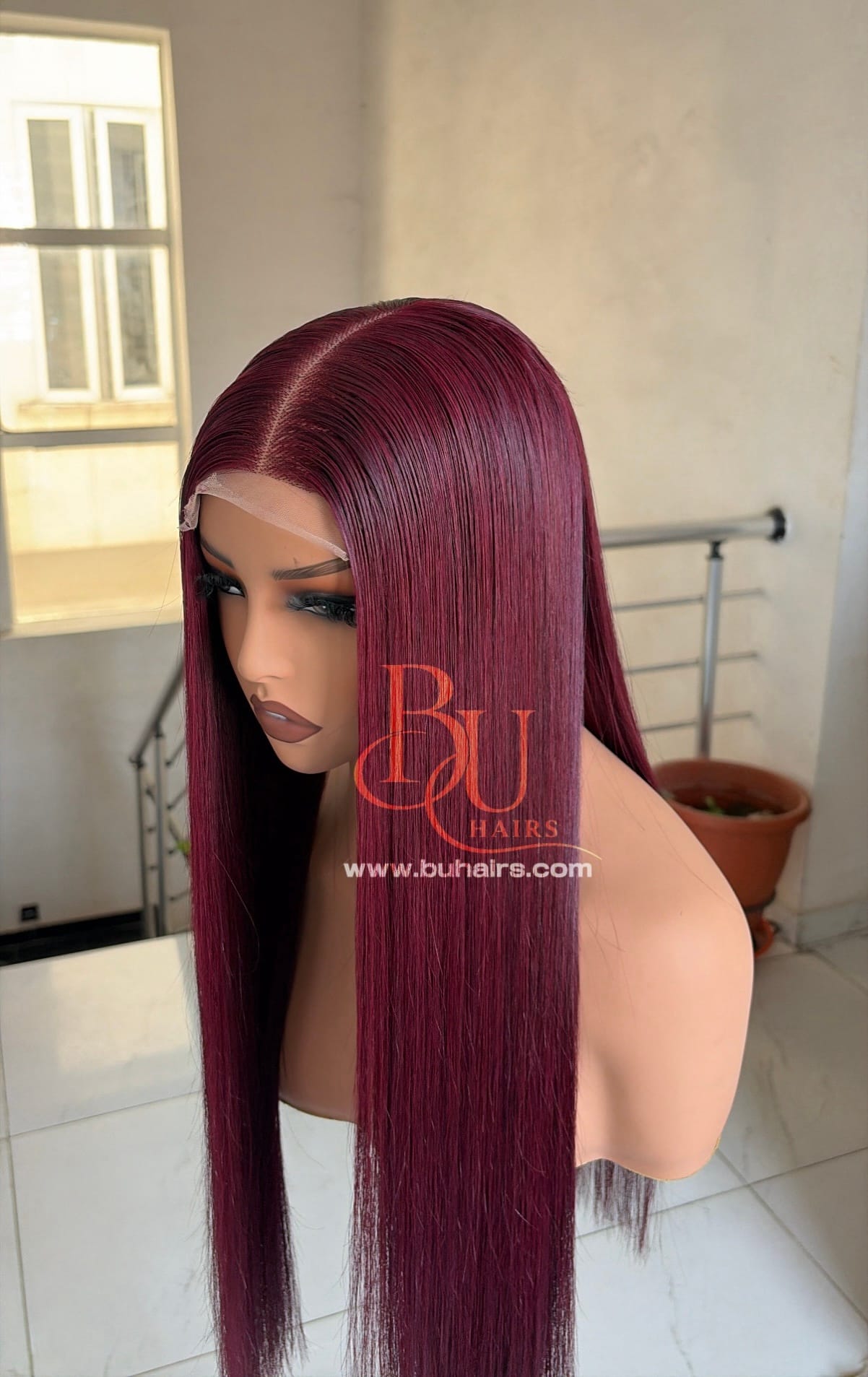 24” Burgundy (2 x 6) SDD Bone Straight Wig