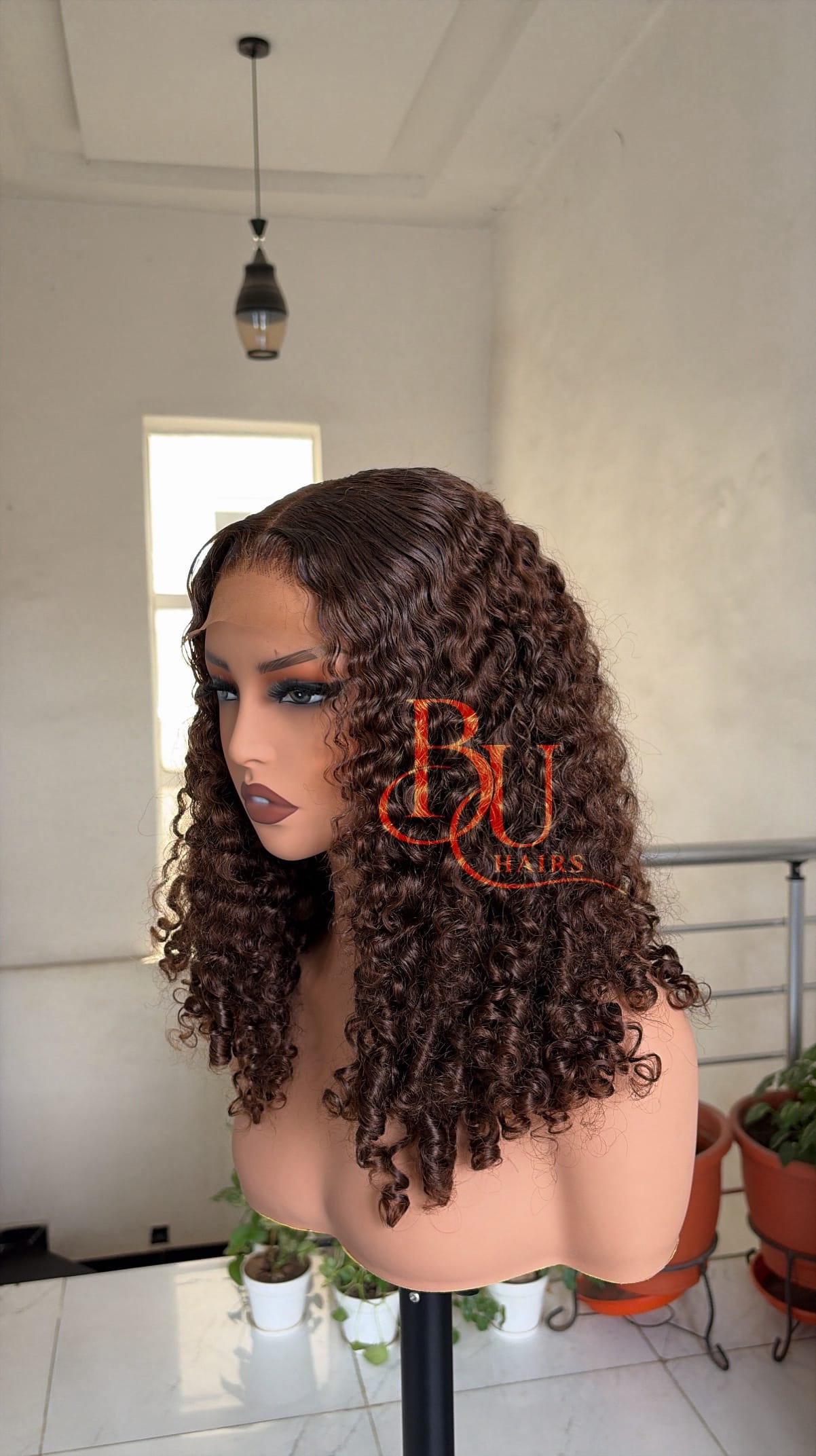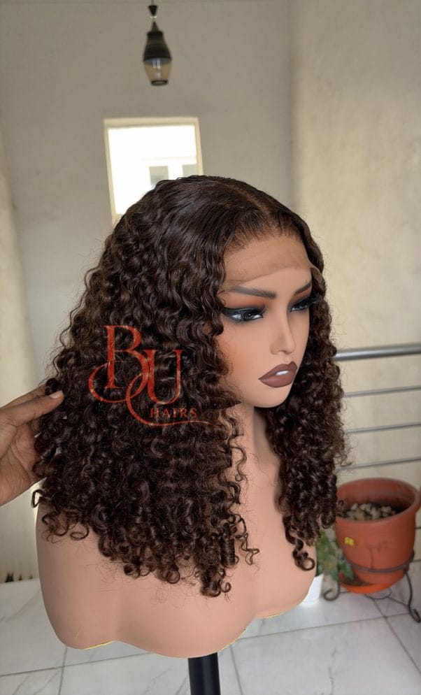 Our wigs are displayed on mannequins to showcase styling. Because mannequins have longer necks and smaller head proportions, lengths may appear longer on them than on a human head.