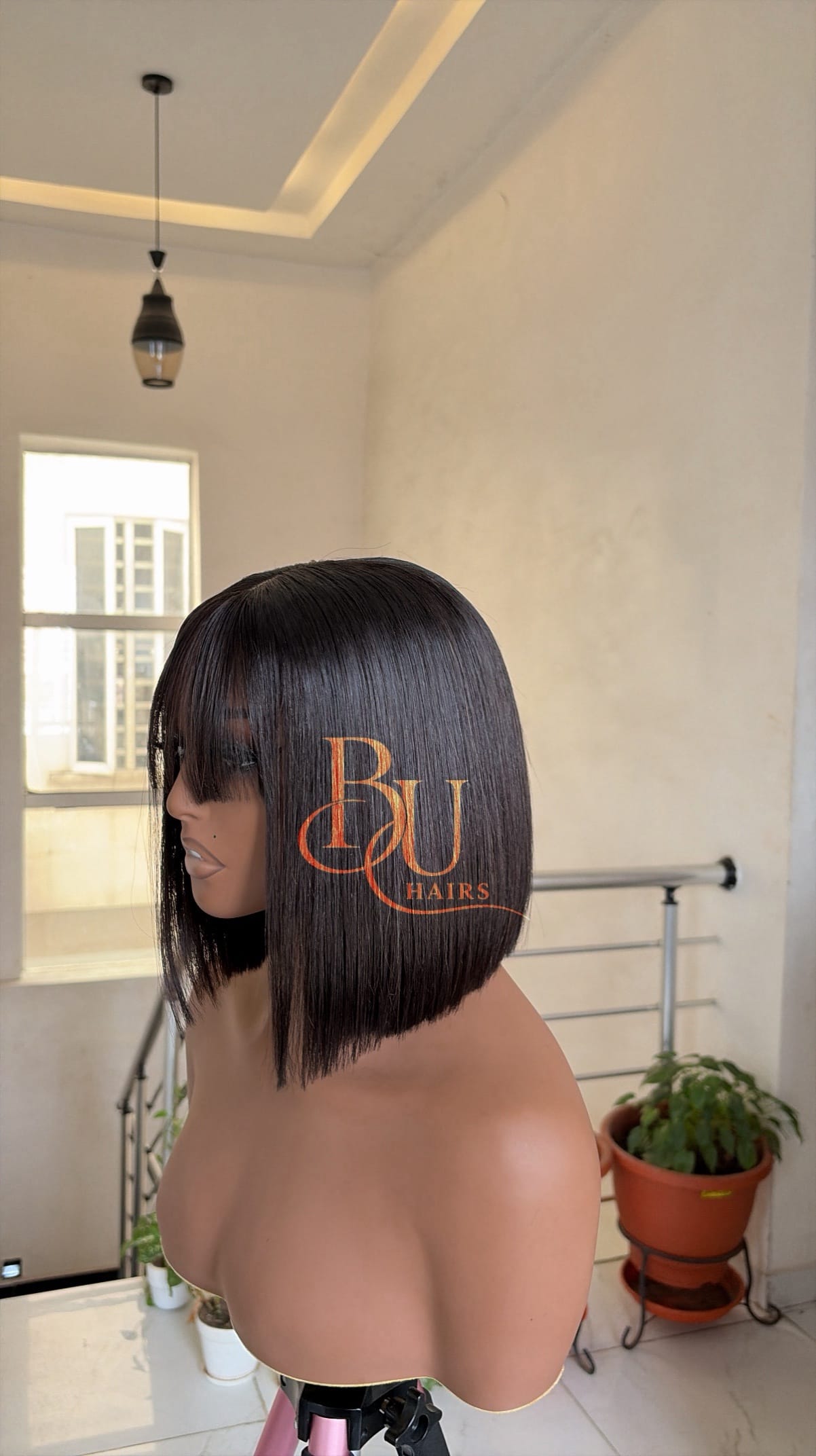 Our wigs are displayed on mannequins to showcase styling. Because mannequins have longer necks and smaller head proportions, lengths may appear longer on them than on a human head.
