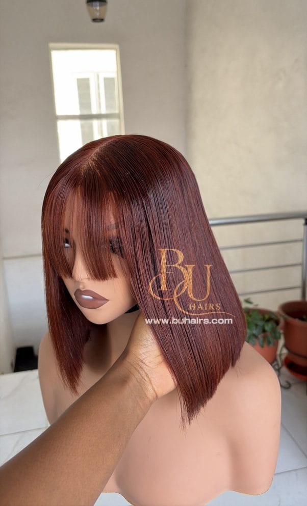 Our wigs are displayed on mannequins to showcase styling. Because mannequins have longer necks and smaller head proportions, lengths may appear longer on them than on a human head.