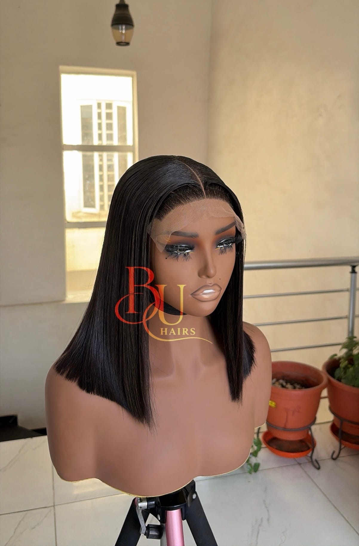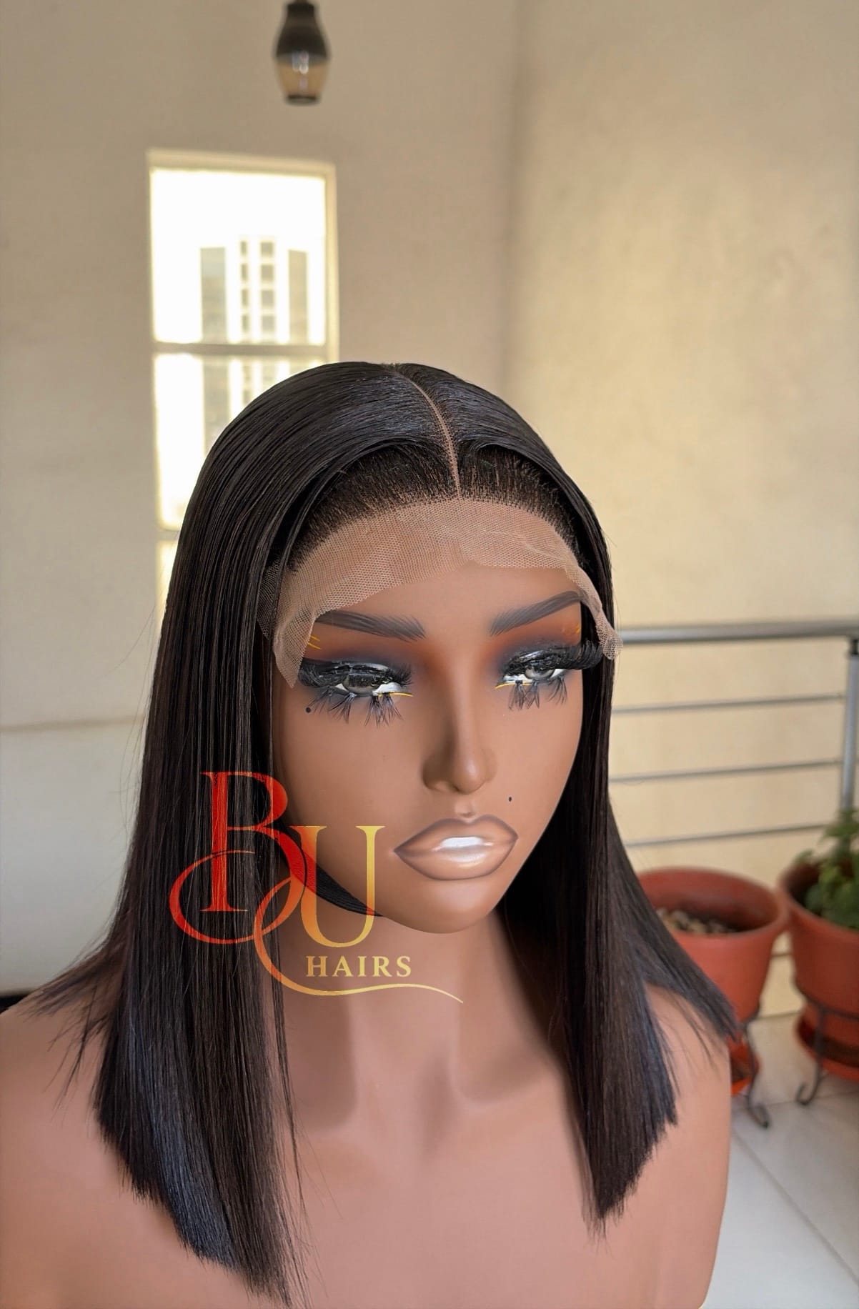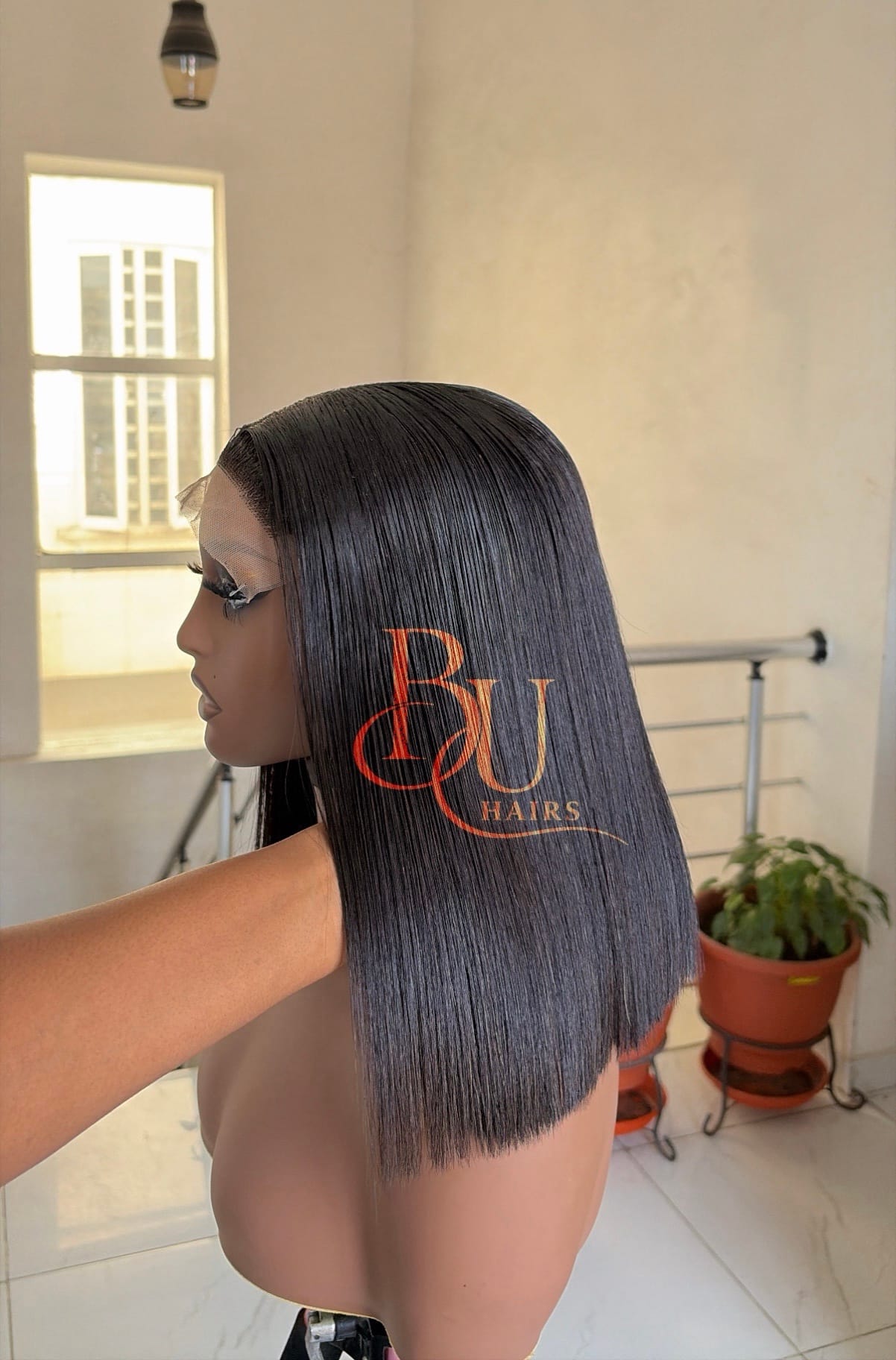 Our wigs are displayed on mannequins to showcase styling. Because mannequins have longer necks and smaller head proportions, lengths may appear longer on them than on a human head.