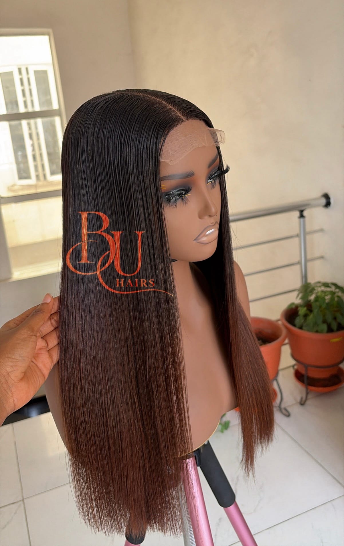 Our wigs are displayed on mannequins to showcase styling. Because mannequins have longer necks and smaller head proportions, lengths may appear longer on them than on a human head.